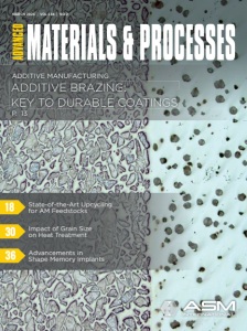 18 30 36 P. 13 State-of-the-Art Upcycling for AM Feedstocks Impact of Grain Size on Heat Treatment Advancements in Shape Memory Implants ADDITIVE BRAZING: KEY TO DURABLE COATINGS ADDITIVE MANUFACTURING MARCH 2026 | VOL 184 | NO 2